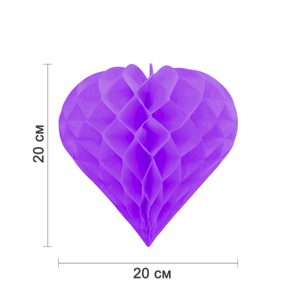 Бумажное украшение "Сердце" 20 см, сиреневый