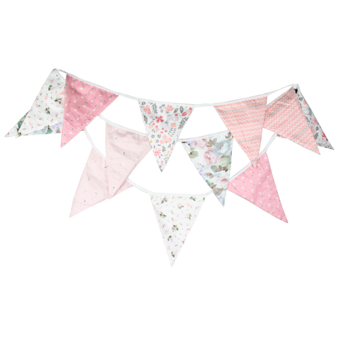 Гирлянда состоит из 12 флажков. Расстояние между флажками - 6 см, общая длина составляет 4 м.