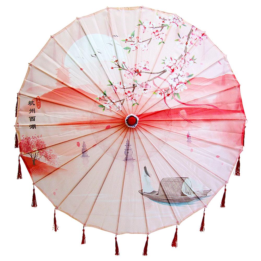 Китайские тканевые зонтики цветочные с кисточками 82х54 см