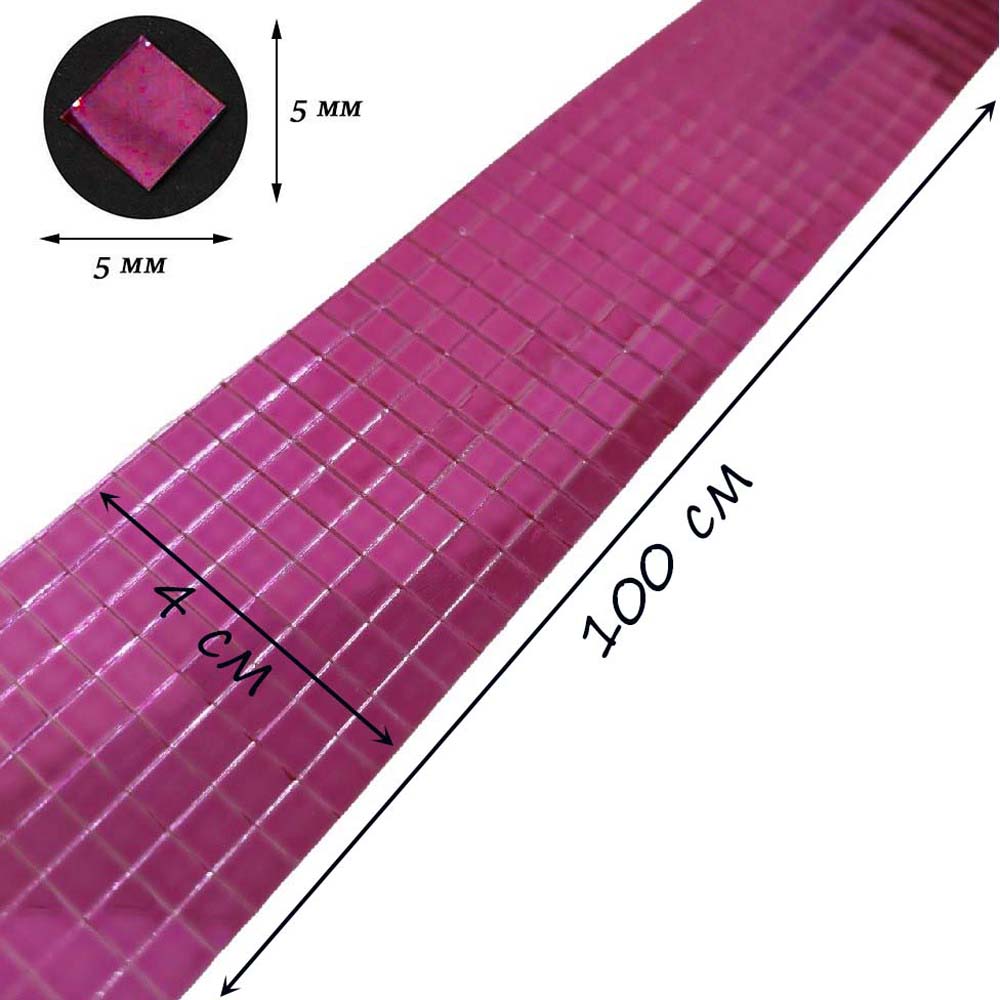 Лента самоклеящаяся зеркальная мозаика стекло, 4см х 1м 5х5мм, малиновый