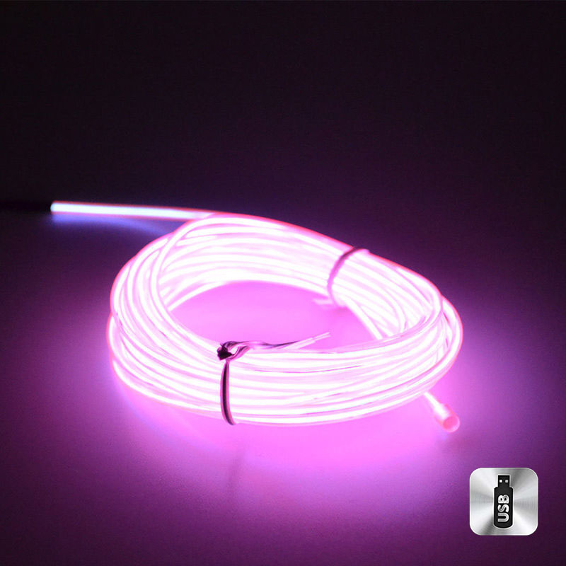 Шнур неоновый светящийся от USB 5 м, розовый
