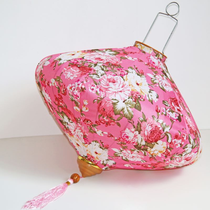 Это традиционные подвесные фонарики ручной работы, изготовленные из шелкового материала с элегантным цветочным узором, которые делают его изысканным и красивым.