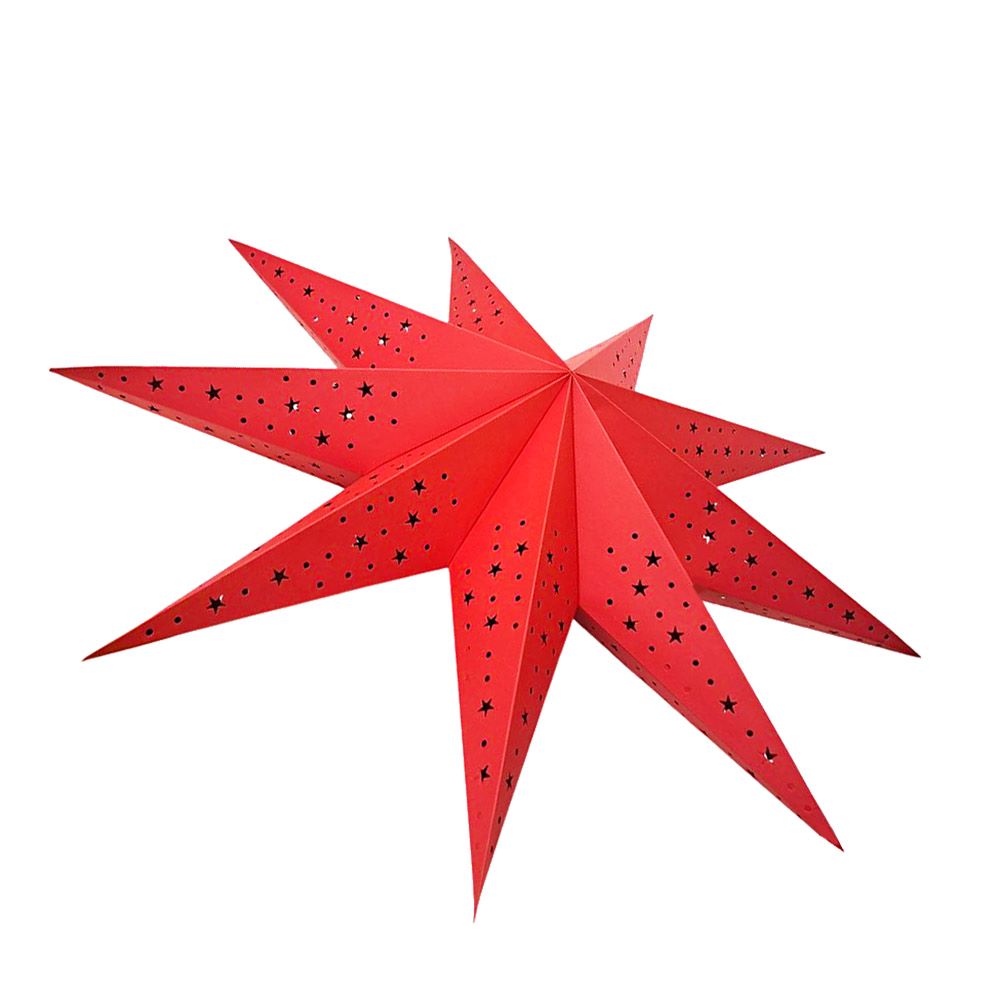 Звезда девятиконечная диаметром 75 см, изготовлена из картона с перфорацией в виде точек и мелких звезд.